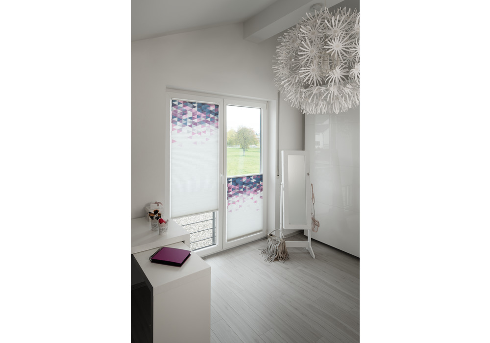 Plissee Duette mit Perlex Beschichtung auch als Sonderform für außergewöhnliche Fensterformen und Dachfenster bieten Plissee-Vorhänge die maßgeschneiderte Lösung, da sie sich überall perfekt anpassen. Dabei tritt die Plissee-Vorhang-Technik gekonnt in den Hintergrund und unterstreicht die optische Wirkung des Behangs.