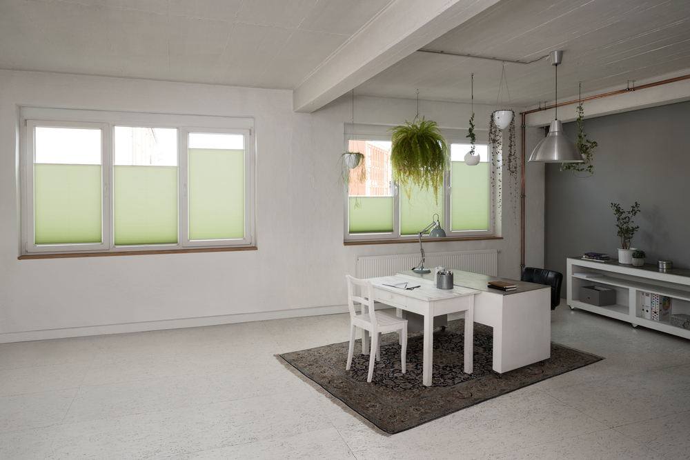 Neben freihängenden Anlagen, die vor dem Fenster montiert die gesamte Fensterfront verschönern, gibt es auch eine gespannte Anlage, deren Einbau direkt in die Glasleiste erfolgt, um die Funktion von z.B. Dreh- oder Kippfenstern uneingeschränkt zu ermöglichen. Die perfekte Technik des gespannten, frei verschiebbaren Plissee-Vorhangs sticht dabei besonders hervor. Der Behang lässt sich von oben oder unten individuell einstellen und ist immer dort, wo Sie ihn gerade benötigen. Die Plissee-Vorhang-Stoffqualitäten überzeugen durch ihre Leistungsvielfalt und erfüllen beispielhaft, was moderne Bildschirmarbeitsplätze und Arbeitswelten fordern.